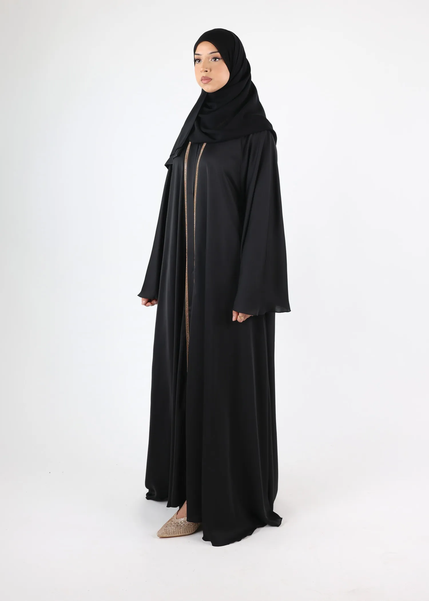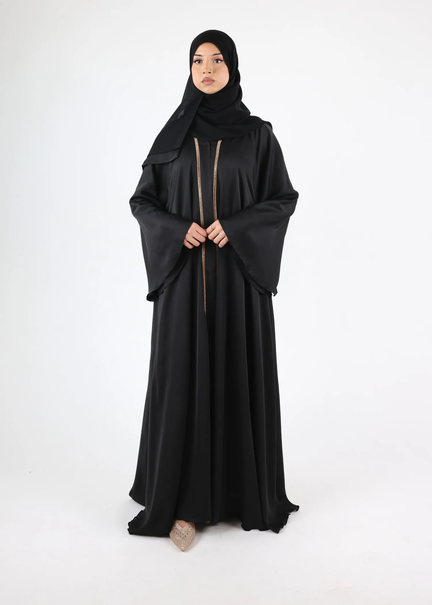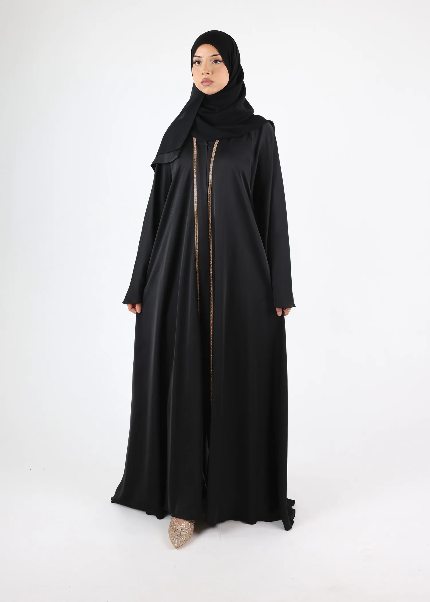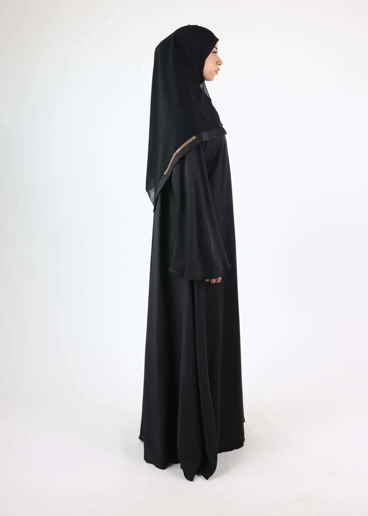Recommendation on reception: The conditions of storage and shipping can wrinkle the abayas. It is recommended to steam iron them before putting them on.