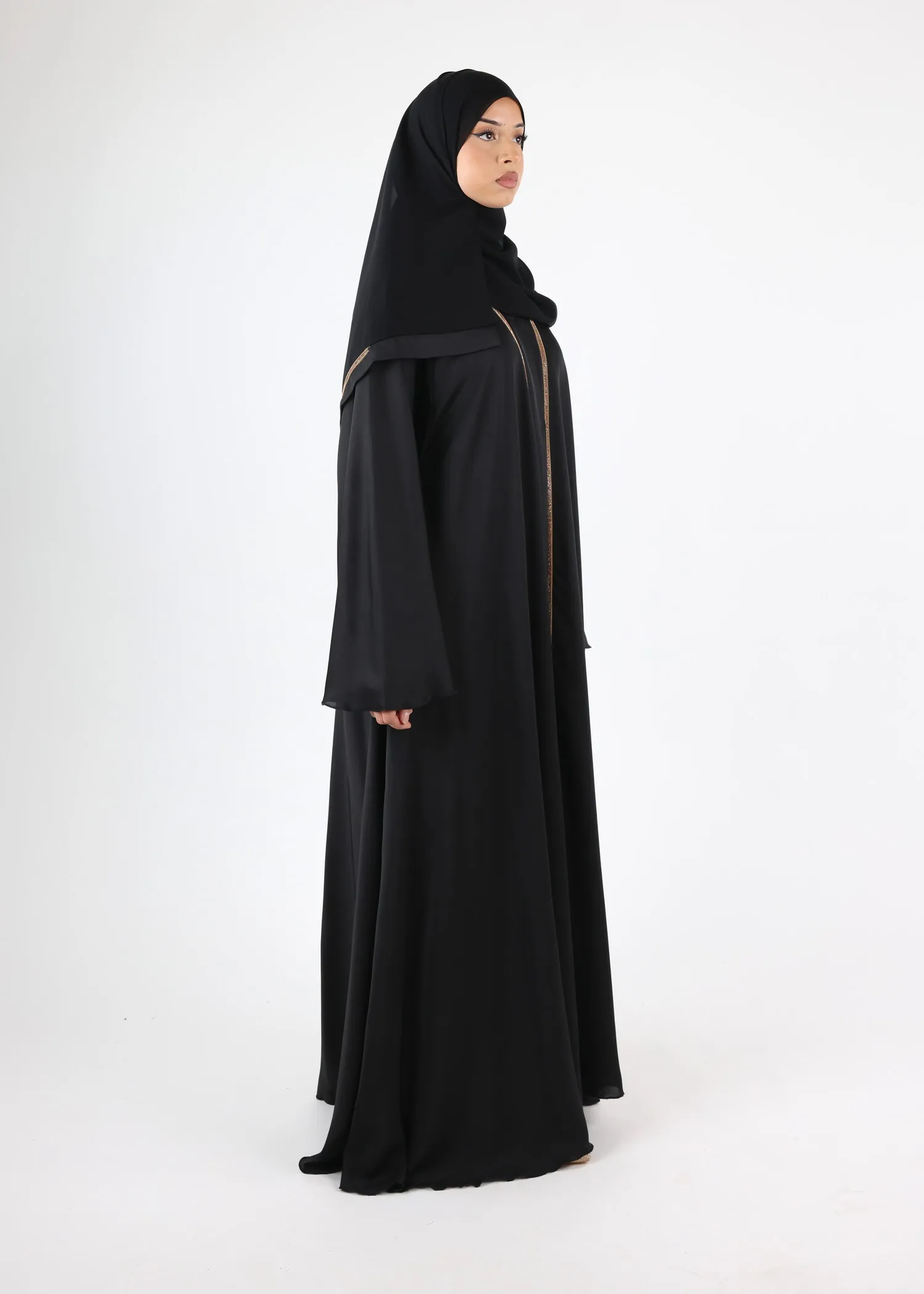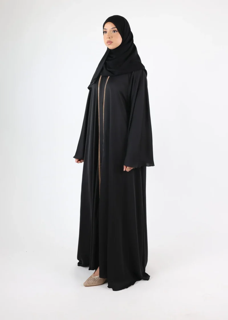Abaya Doha is adorned with intricate unique pipings, adding a touch of opulence to your wardrobe. Each detail is meticulously crafted to enhance the overall aesthetic, ensuring you stand out with effortless grace and sophistication.