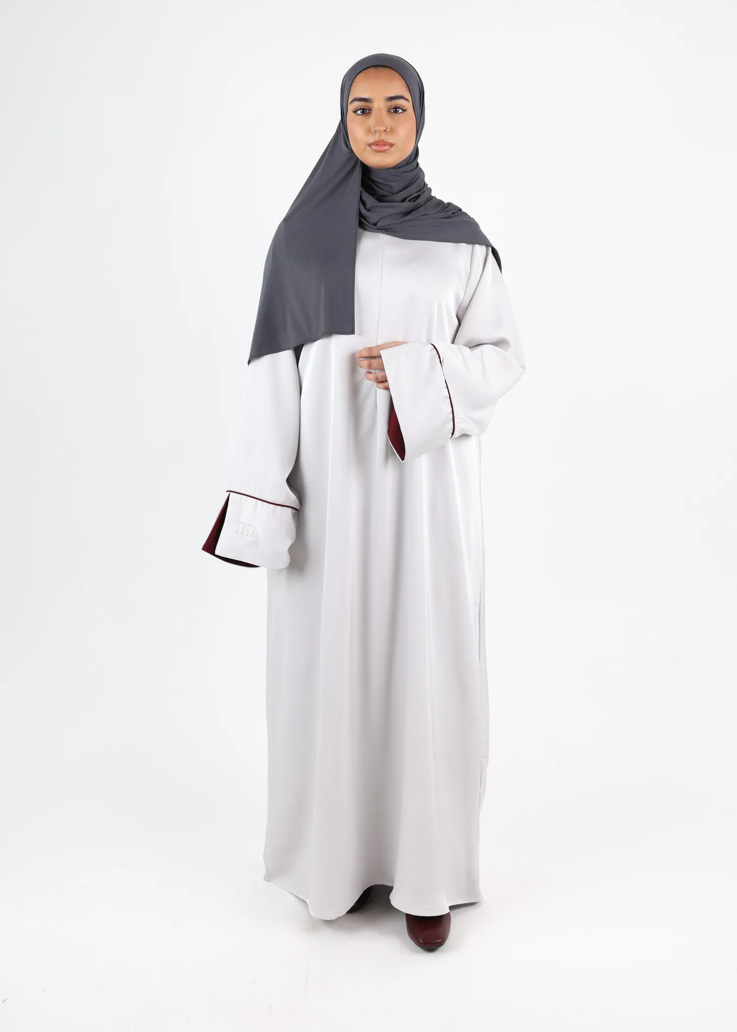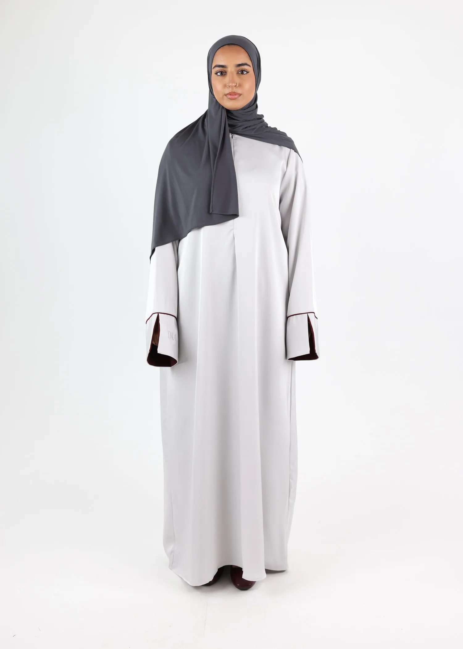 The cut is full-length and fluid, creating a graceful modest silhouette suitable for Eid, special occasions, events, or elevated everyday wear. The lightweight satin drapes beautifully and moves effortlessly, offering both comfort and structure.