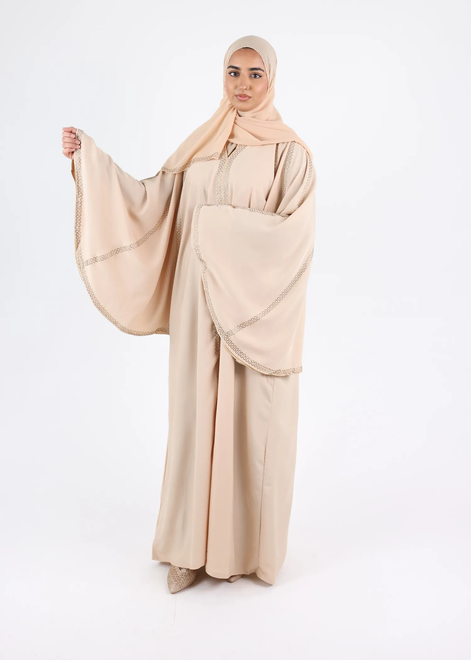 • A matching chiffon hijab is included for a polished and effortless finishing touch.