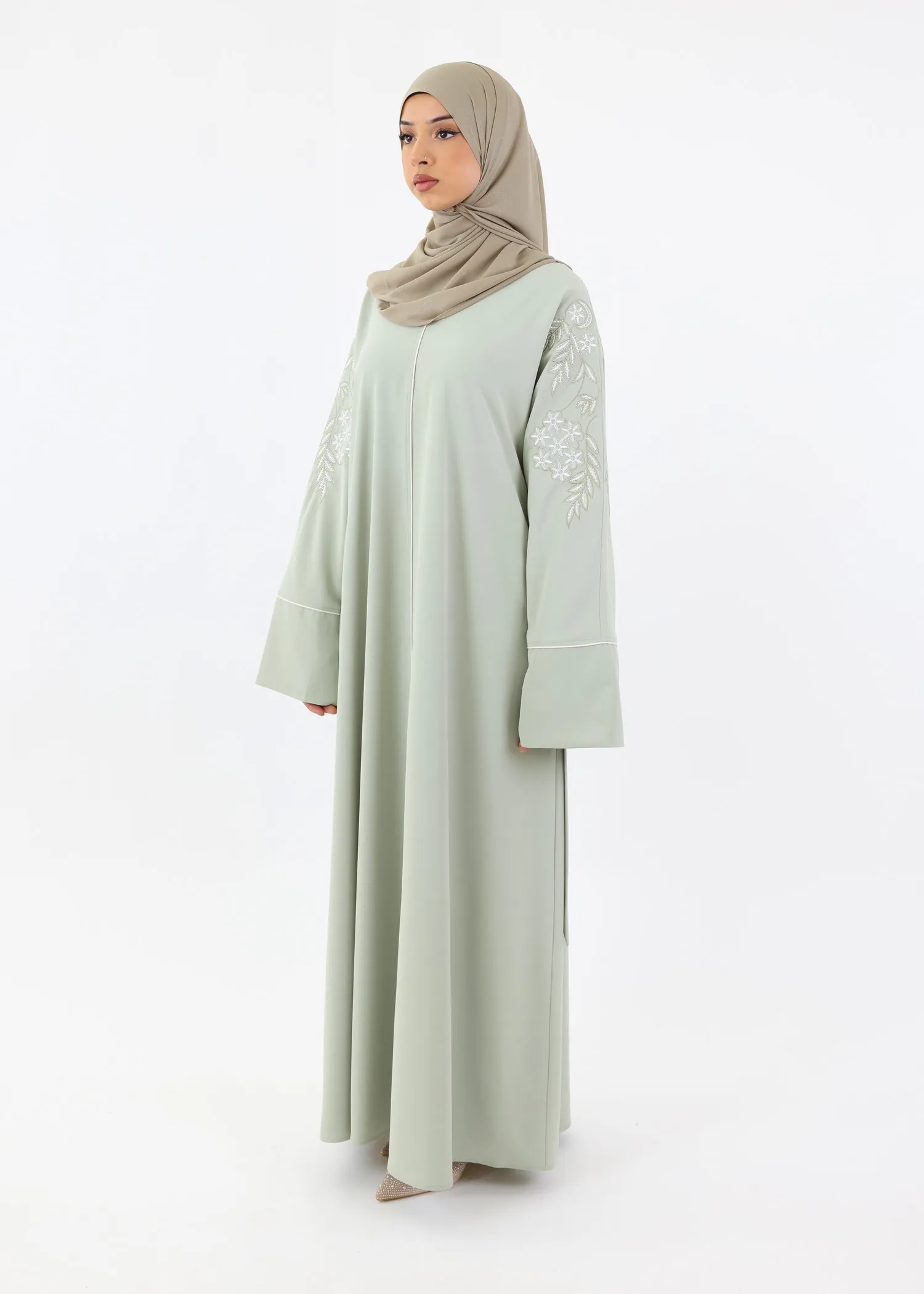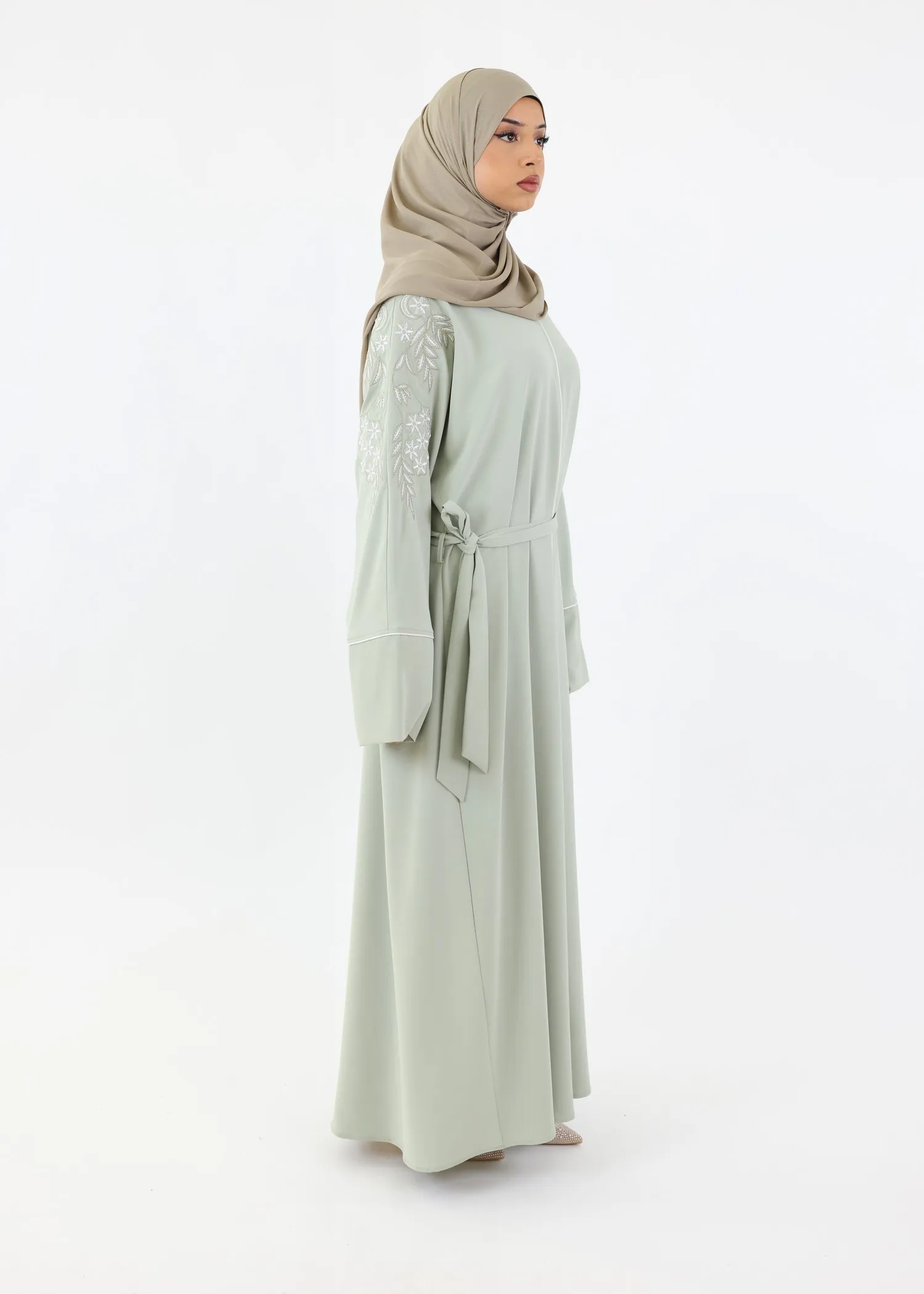 Recommendation on reception: The conditions of storage and shipping can wrinkle the abayas. It is recommended to steam iron them before putting them on.