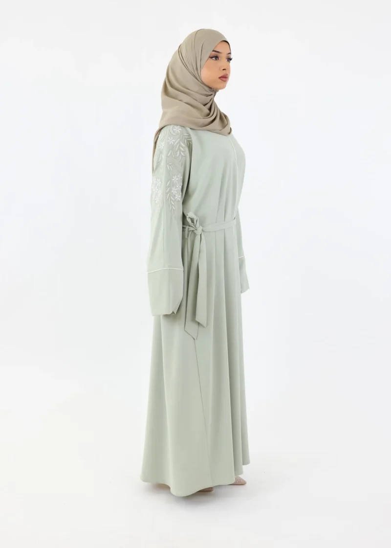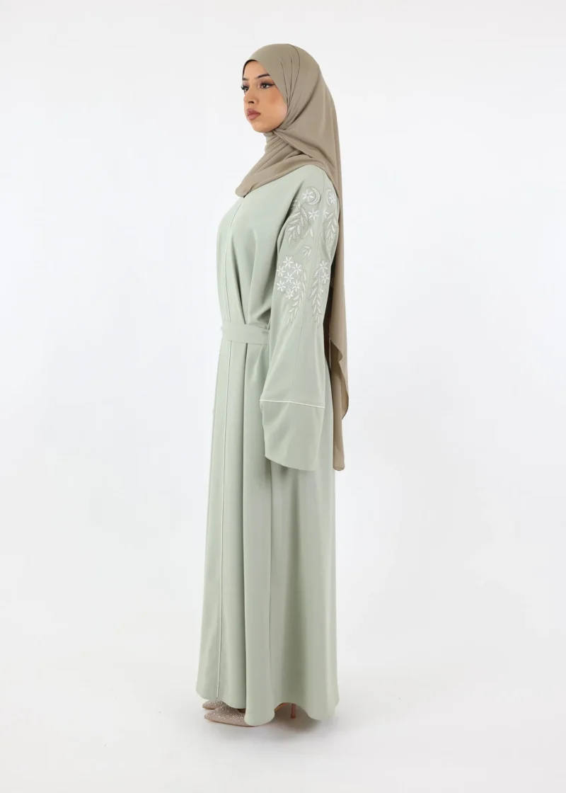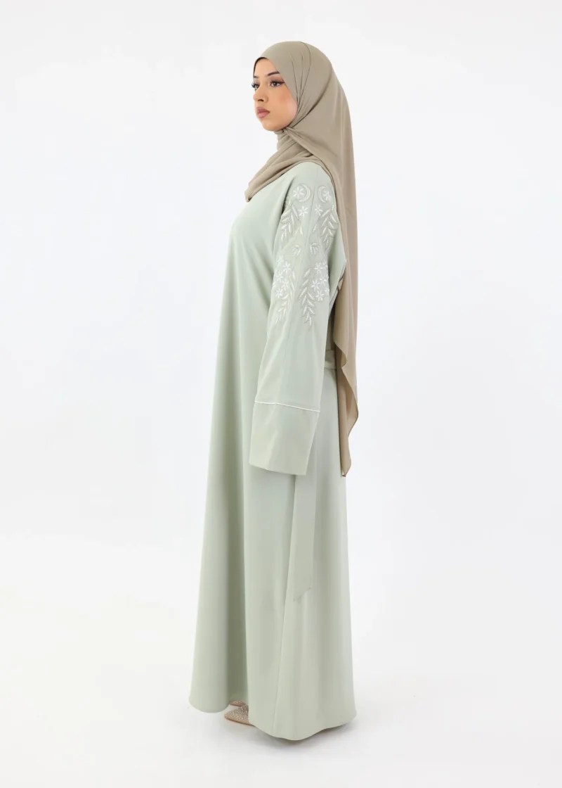 Ironing: It is best to steam iron your abaya at a low temperature, as this is gentler on the fabric. If you prefer to iron, use a low temperature and iron the abaya inside out.