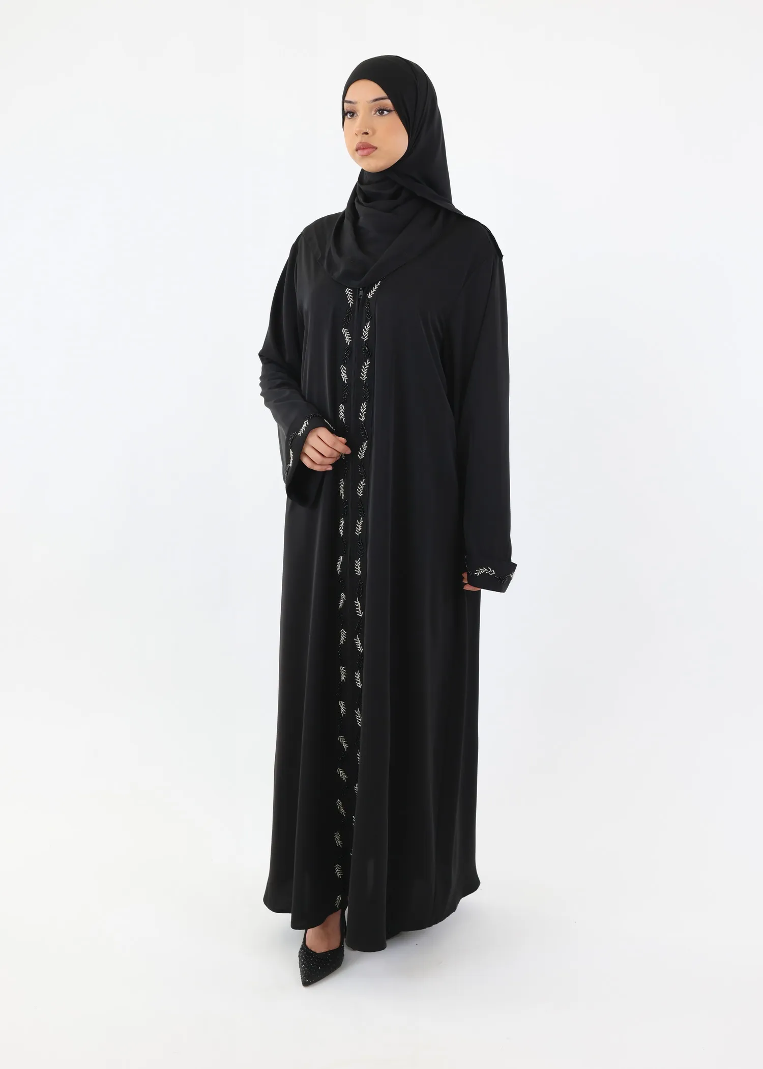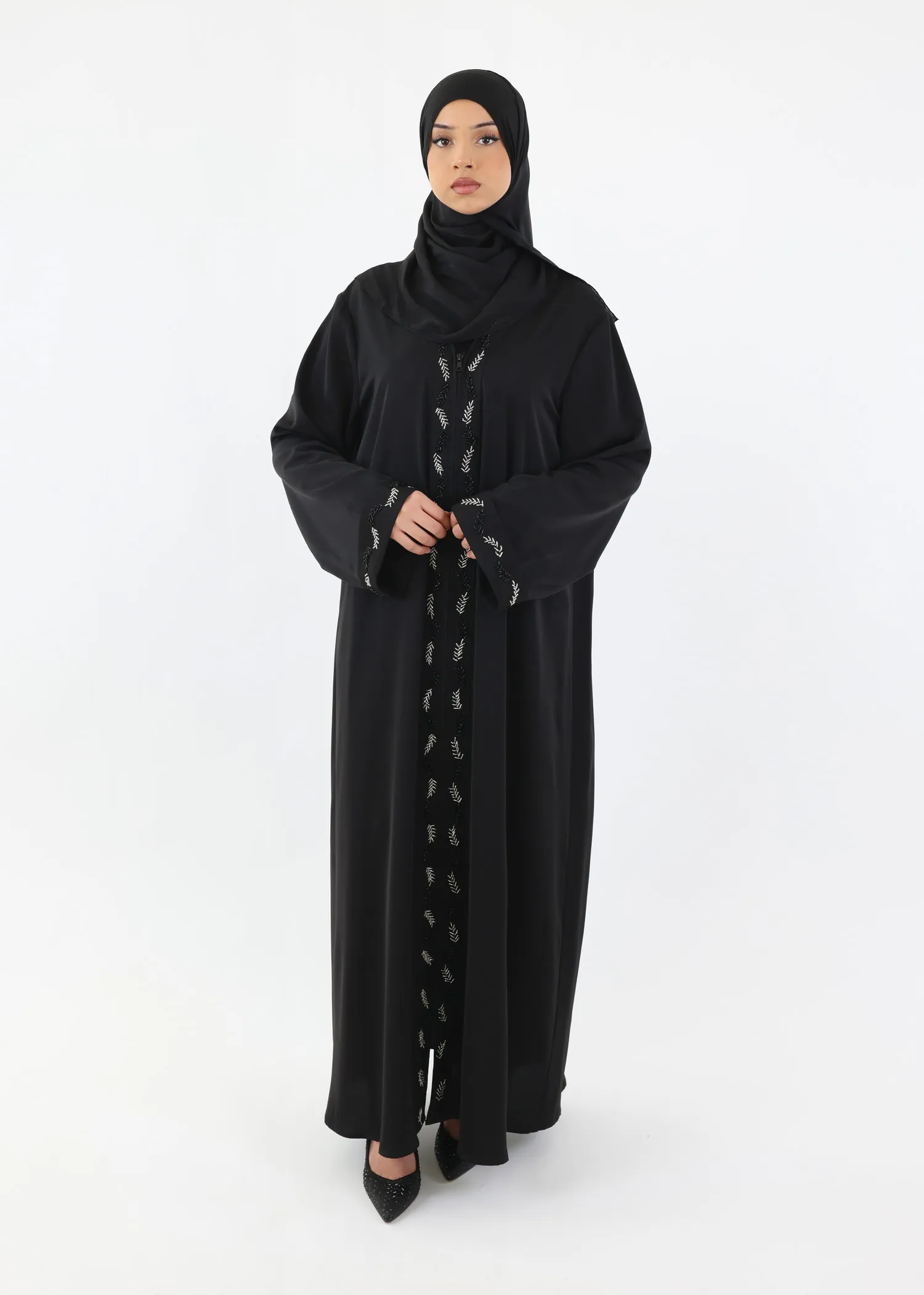 • Closure: Long front zip allowing the abaya to be fully closed