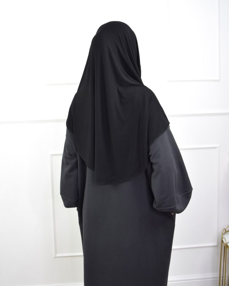 The design also includes a rounded cut at the back, allowing the hijab to drape elegantly, adding a touch of sophistication to your look. The headband, which is placed on the forehead and tied at the nape of the neck, is made from the same soft Modal fabric as the hijab itself, ensuring a cohesive, polished appearance.