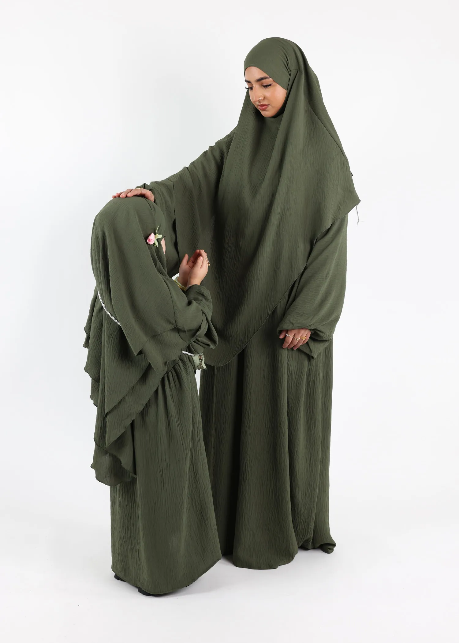 • The Abaya and the Khimar are not connected, so it is possible to separate them for a different outfit.