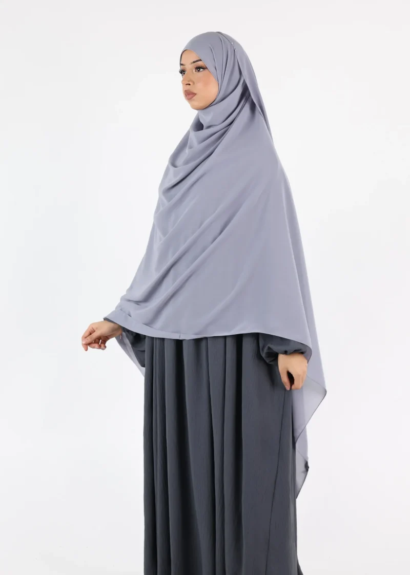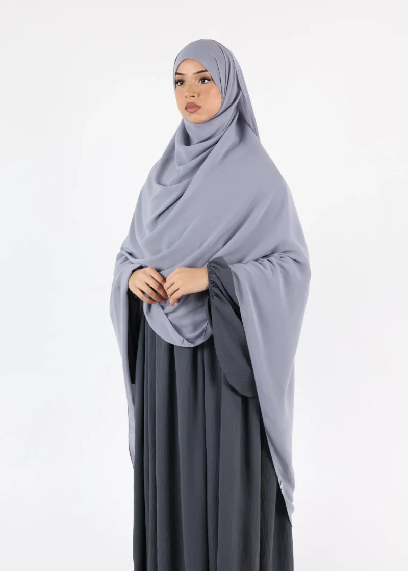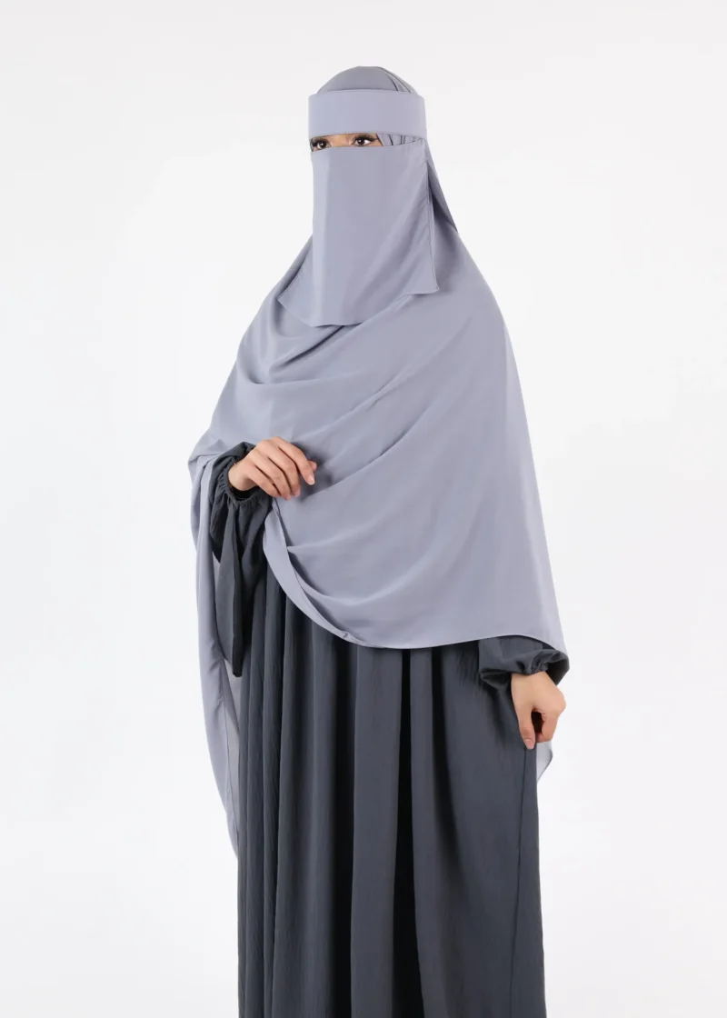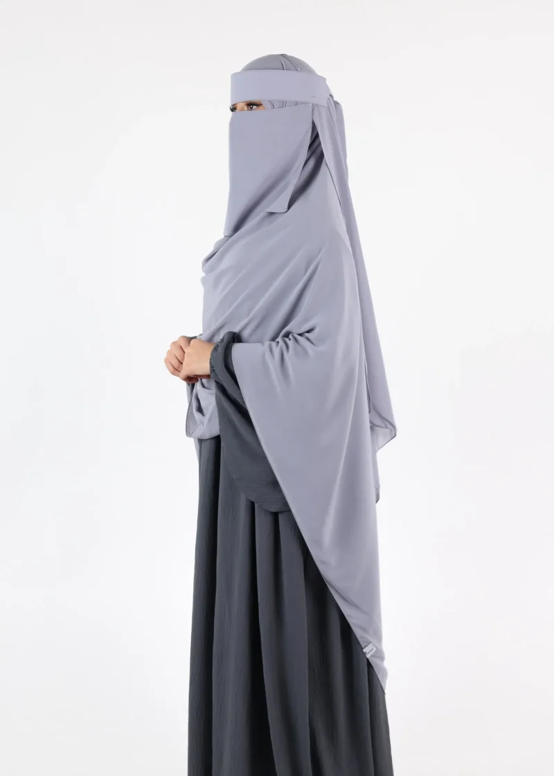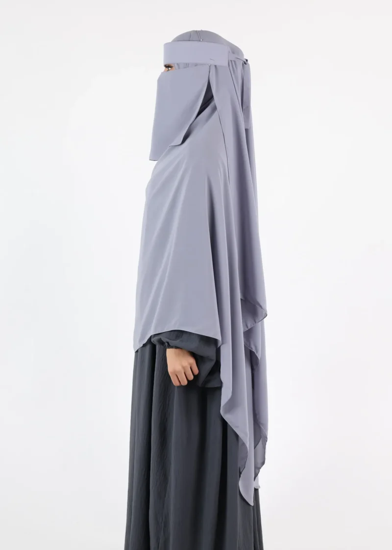 Note: In the gallery images, the Mega Hijab is paired with the Yemeni Niqab Short – Premium – Steel Grey  (not included).