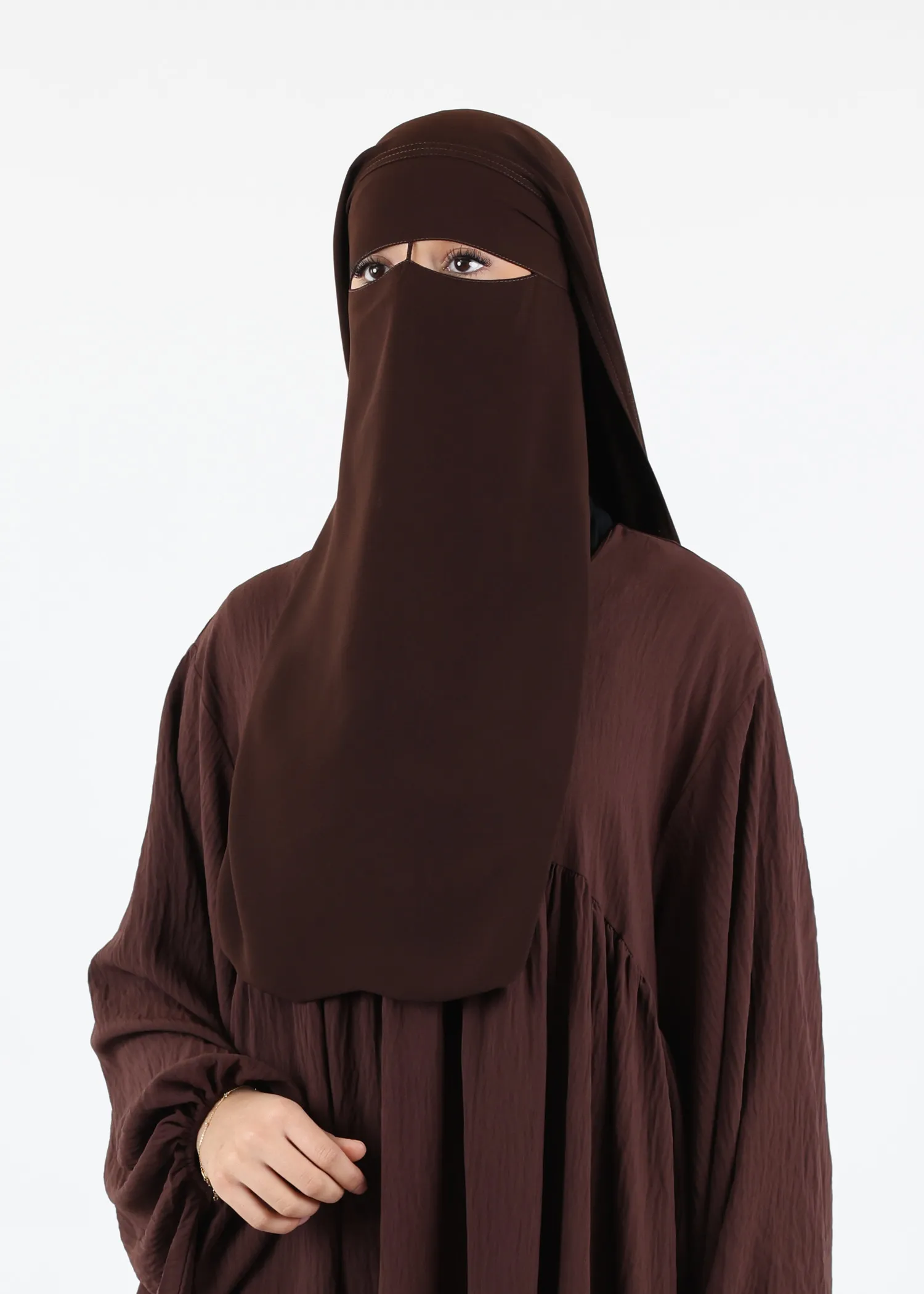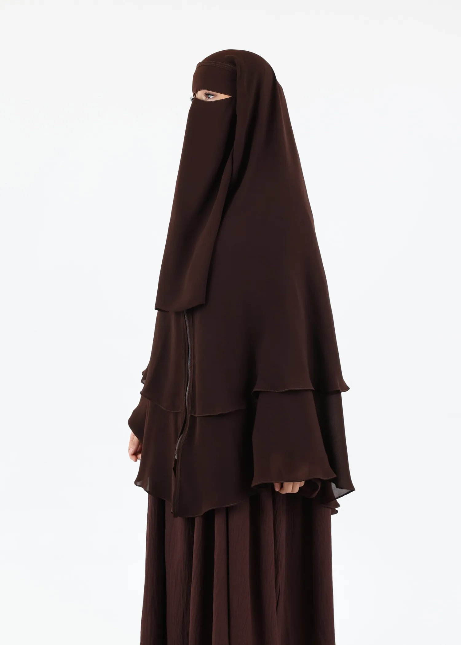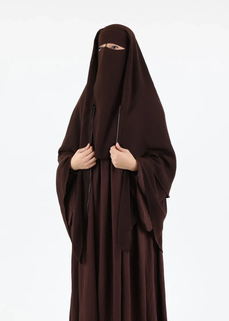 • Integrated Design: The Niqab and Khimar are seamlessly combined into one piece, eliminating the need for multiple garments and ensuring a cohesive, streamlined look.