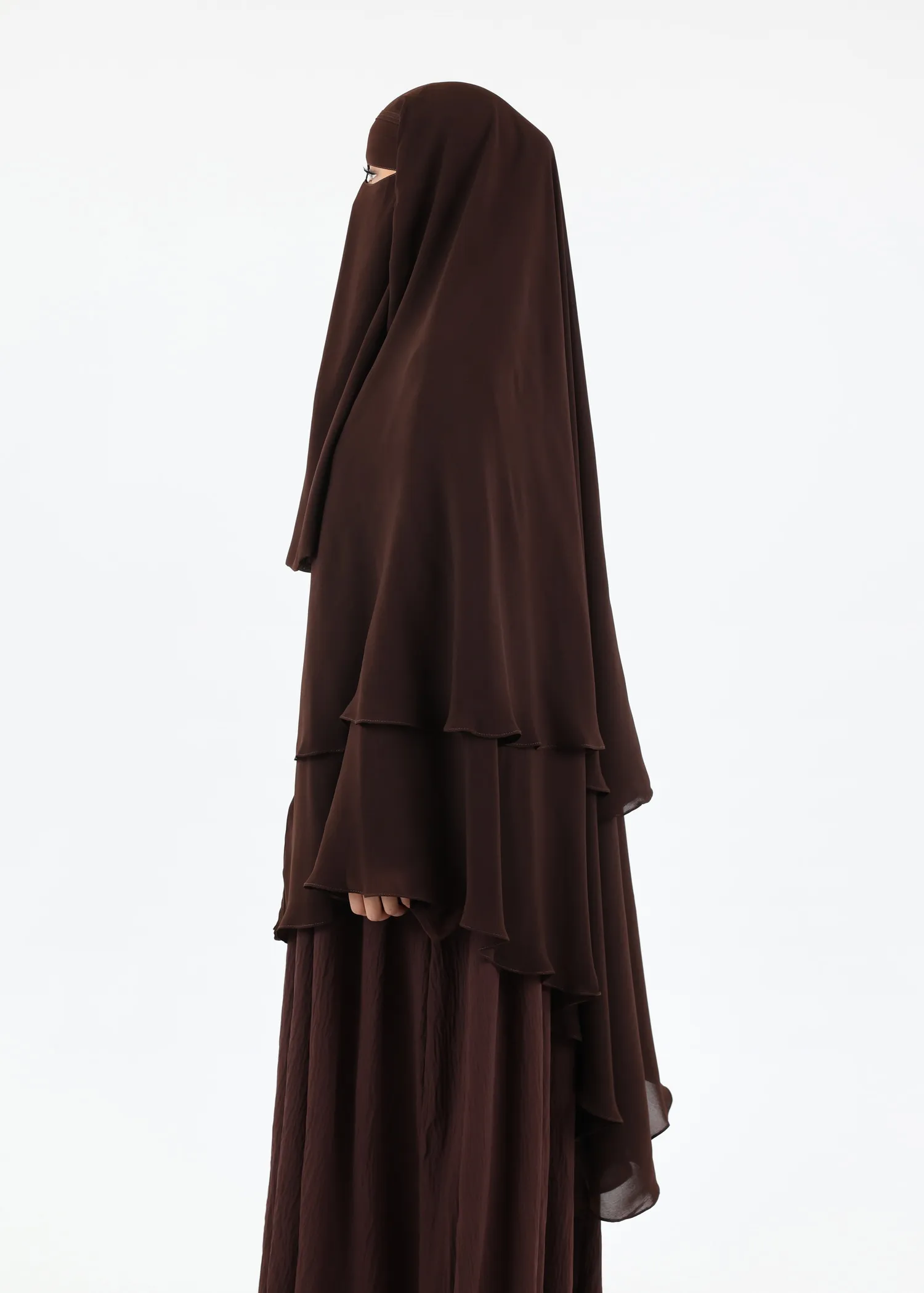 • 2-Layer Khimar: The khimar features two layers for added coverage and elegance. The first layer measures 108 cm, while the second layer extends to 155 cm.
