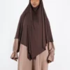 The khimar is finished with two integrated ties, allowing a secure, adjustable, and comfortable fit that stays in place throughout the day. Its balanced proportions make it suitable for both first-time khimar wearers and sisters who regularly wear khimar and prefer a lighter, shorter option compared to maxi styles.
