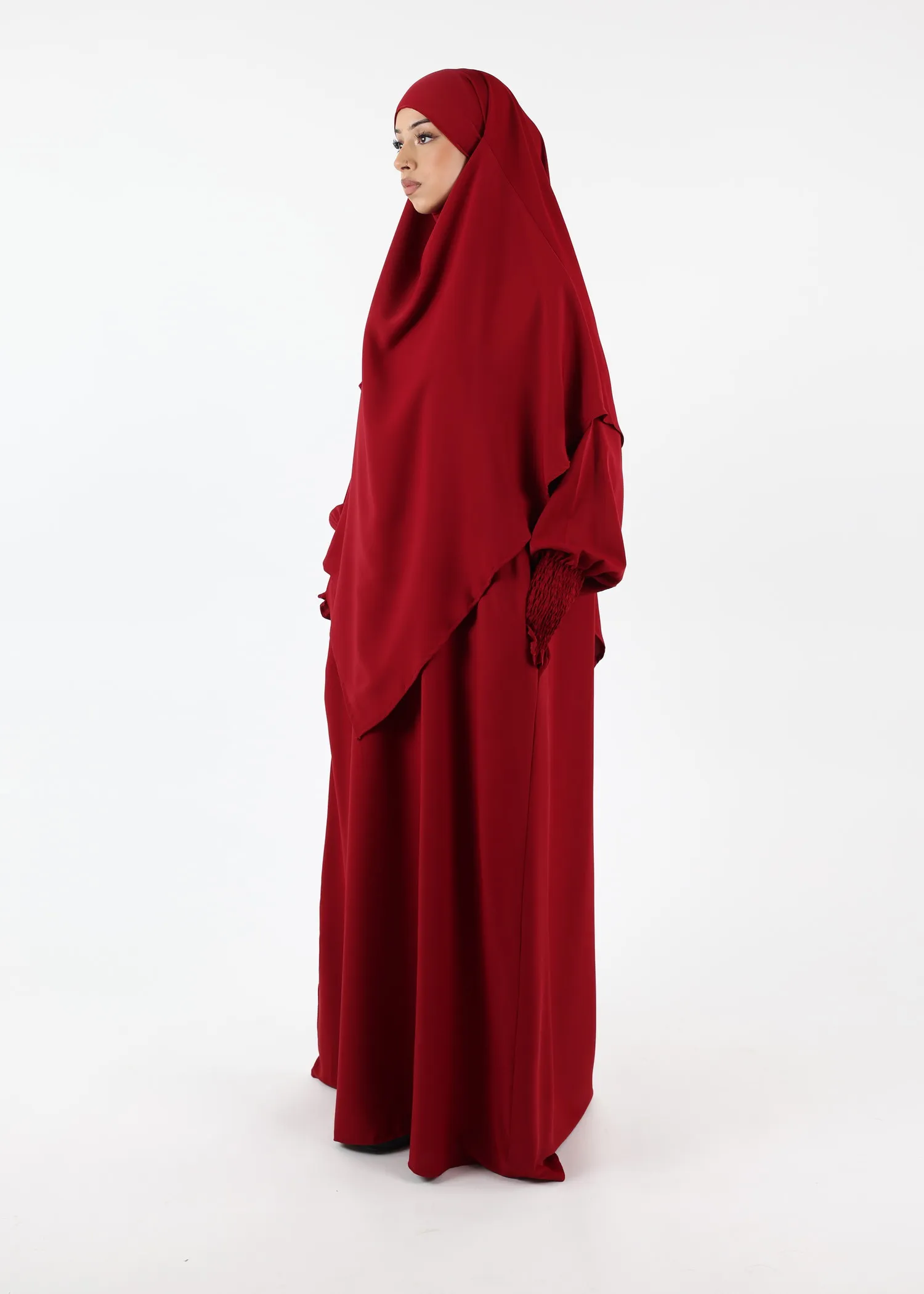 Be the first to review “Set Abaya and Khimar Ayla Medina – Dark Red”