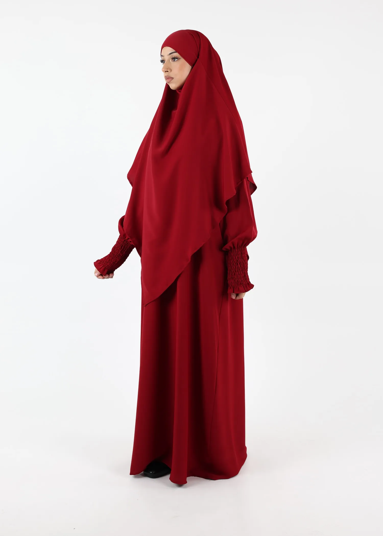 • Versatile wear: The abaya and khimar are separate pieces, allowing for mix-and-match styling.