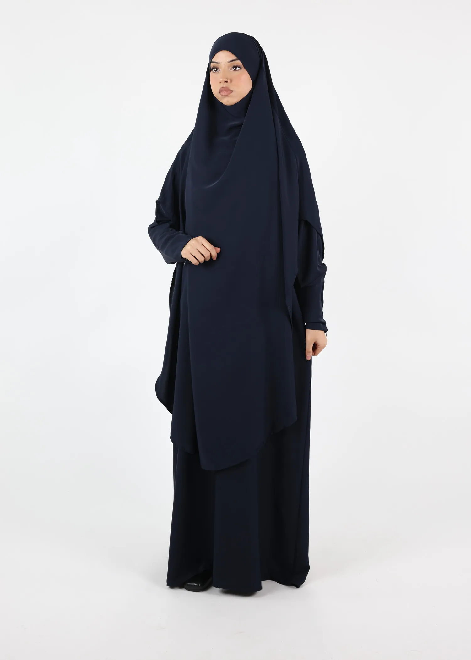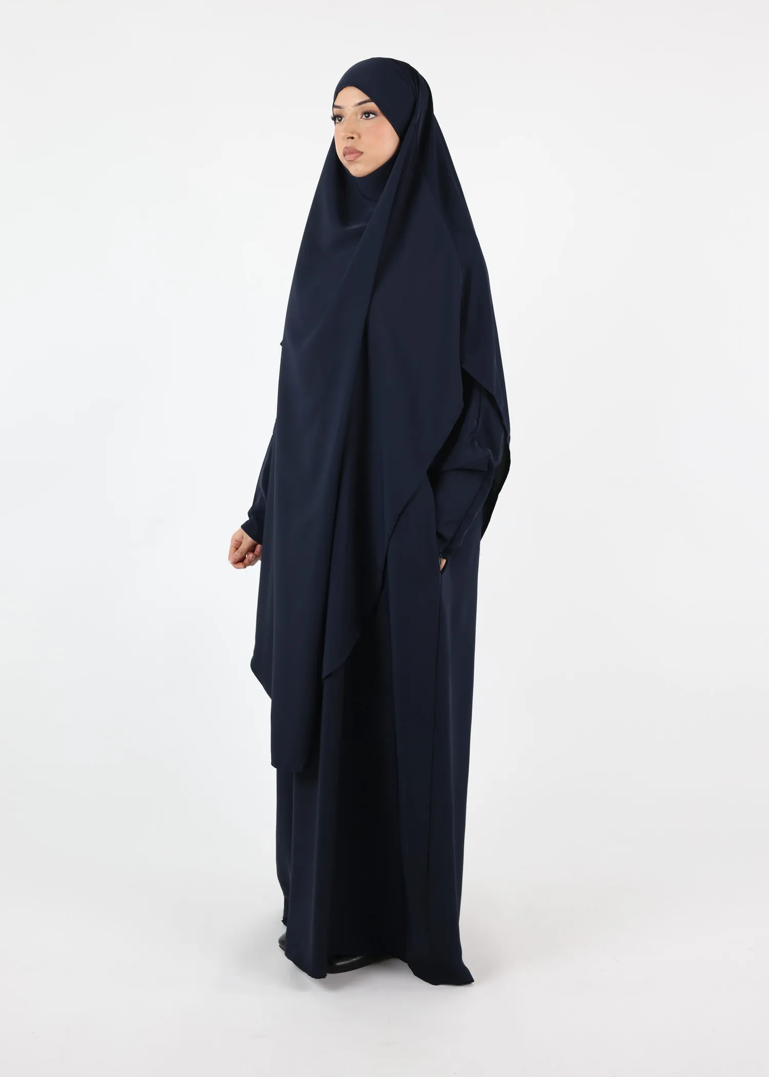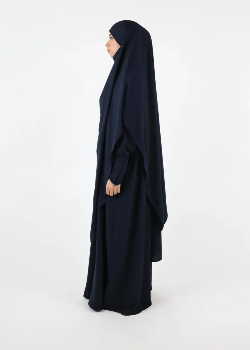 • Composed of 2 pieces: A loose abaya and a long rounded khimar.