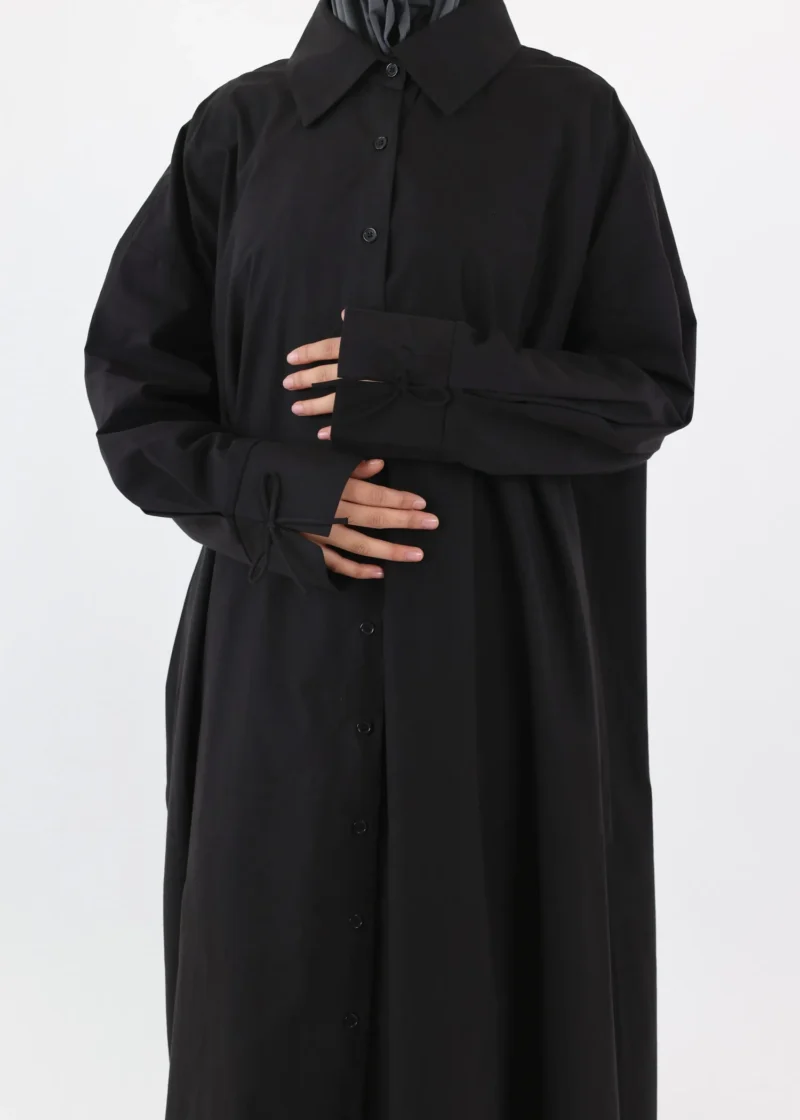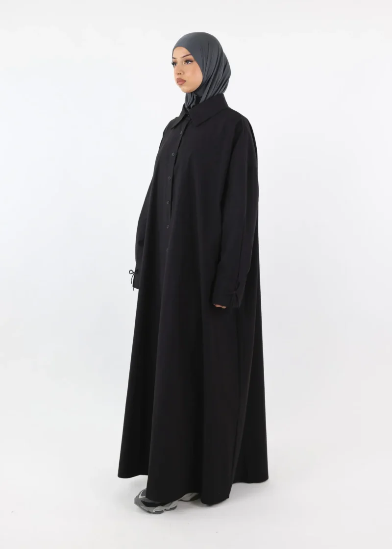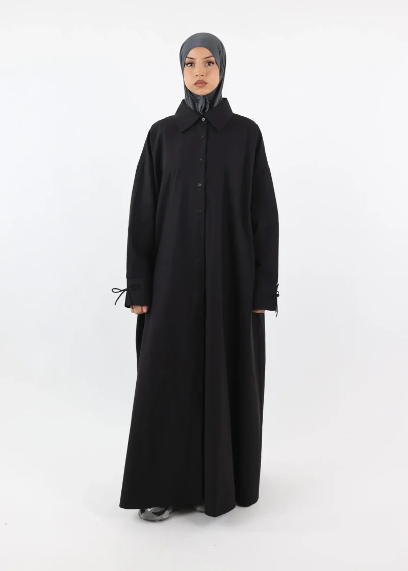 Be the first to review “Shirt Dress Abaya – Cotton – Black”